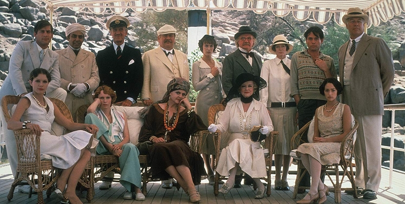 Most important, the movie-going public (and they couldn’t all be Agatha Christie fans, could they?) agreed with me, and as a result, EMI Productions and Brabourne decided to do it again, this time with Death on the Nile. Albert Finney was unfortunately unavailable, and so Peter Ustinov was cast as Poirot. You can leave me a comment as to who you like more between them, but my understanding was that the producers decided to hire an actor who would ape Finney’s mannered performance. Ustinov was less Poirot-like but arguably more entertaining, although in subsequent renditions of the role he would venture perhaps a little too far into the realm of comedy.