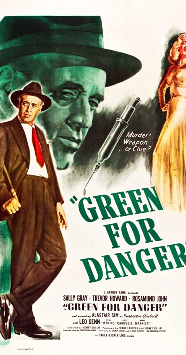 Green for Danger (1944) was Brand’s third novel, and just as Roger Ackroyd did for Christie, this novel showed how Brand’s talents had blossomed to full flower. It was popular enough to become a “prestige film” for the J. Arthur Rank studios two years later. Everson describes the fate of that film: