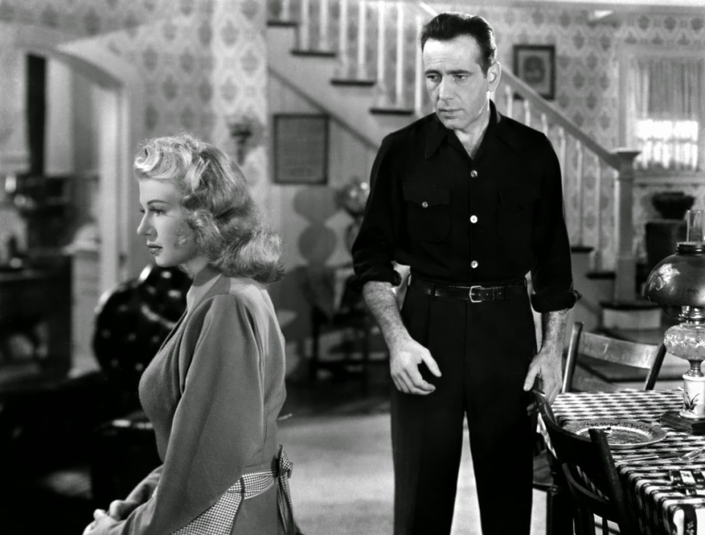 What keeps this from evolving into one of those irritating Kafka-esqe tragedies is that we all can see the innate goodness in Bogie’s poor shlub of a crook. And since the whole movie is basically a flashback from Duke’s deathbed in prison, we know from the start how it’s going to end. The question here involves something bigger than survival: redemption. Berne’s soul becomes inextricably linked to that of an innocent man who made the mistake of doing Berne a favor for love. George Anderson (Robert Travis) wants to marry the lovely Ruth, but her father won’t have it. George needs money to be worthy of Ruth’s hand, and so he fakes an alibi for Berne (who, you must remember, shouldn’t have had to provide an alibi in the first place.)