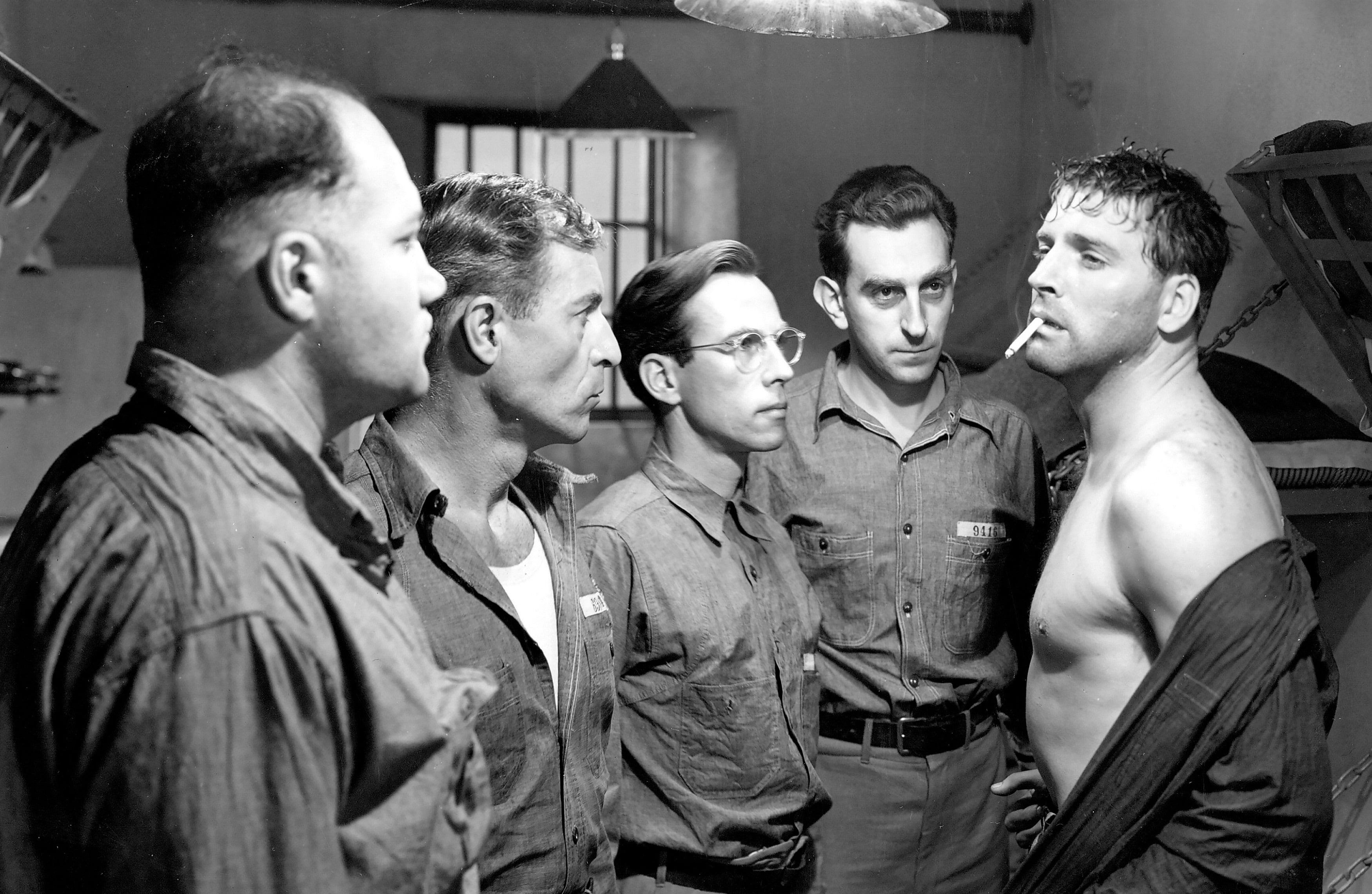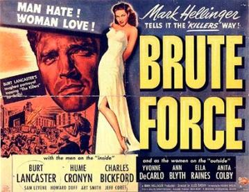 Brute Force is about men in prison, and like so many “big house” movies before and after it, the institution these prisoners find themselves in is a poisonous one. The first image we get is of two cars passing each other in the prison yard: one contains the corpse of a prisoner, and other contains Joe Collins (Lancaster), just returned from a stint in solitary for concealing a knife. Except Joe was framed by another prisoner named Wilson, acting at the behest of sadistic Captain of the Guards, Munsey (Hume Cronyn). That’s what Munsey does: provokes the prisoners and turns them against each other to provide himself with opportunities to punish, torture and wield control over the men.