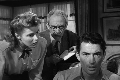 Both women are trying to solve the problem of who their man truly is. This is an odd situation to find oneself in with the person one loves. Since the problems facing “Dr. Edwardes”/John are psychological, the investigation into his true nature continues the intellectual bent of the movie; hence, all that psycho-babble. Lena’s situation is purely emotional, as everything that happens, every action and reaction that her Johnnie performs, causes her panic to increase. In one sense, then, watching Lena’s struggles is more entertaining – except the stakes seem so much lower. And while Joan Fontaine is more interesting here at the start than she was in Rebecca, she devolves into another frightened mouse halfway through the film. In most of the stills I found from the movie, Grant looks charming, threatening, desperate; Fontaine looks . . . uncertain. Evidently, it’s more exciting to play the object of suspicion than the one doing the suspecting!