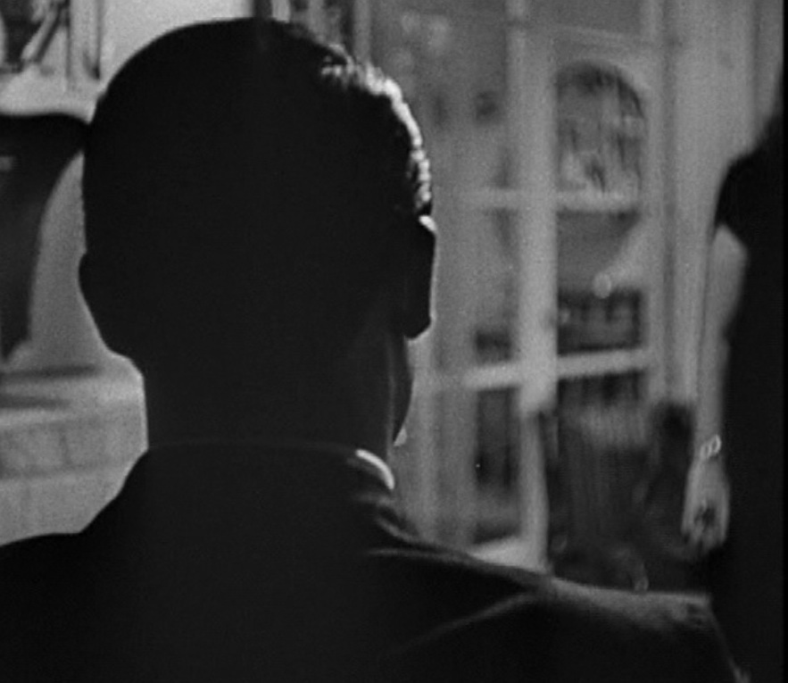 One of the things Hitchcock does when he’s fully on his game is to give his star(s) a wonderful entrance. Bergman bursts out of the courtroom where we’ve been peeping through a crack in the door to hear her father’s sentence passed, and her entrance gives the scene tension and life. But Grant’s first appearance is one of his best ever: at the party, his whole first extended shot is of the back of his head as Alicia takes note of him and begins to flirt. We don’t need to see his face! That exquisite outline is unmistakable.