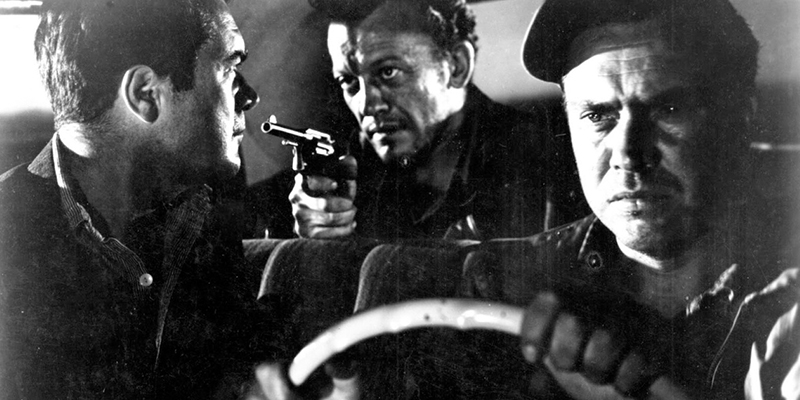For The Hitchhiker, Lupino and her ex-husband Collier Young took a story by Daniel Mainwaring (another victim of HUAC’s machinations) based on the real-life exploits of a serial killer named Billy Cook, who in California in 1950 murdered six people and kidnapped three others, including a sheriff’s deputy who he forced to drive him out to the desert where the deputy was left to die but managed to survive and return to civilization. Cook was captured, tried and sent to the gas chamber in 1952.
