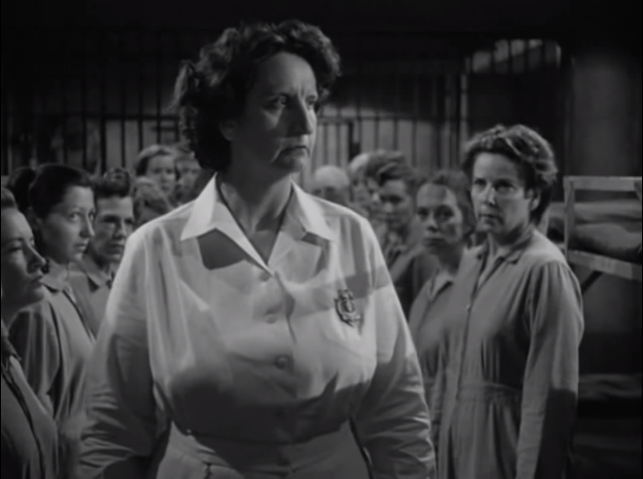 Thus Caged can be viewed as an indictment of another corrupt government system – HUAC, which systematically ruined one life after another with phony charges, all for a cause based more on fear and power-mongering than on truth. The men who step momentarily step onto the screen in Caged don’t know or understand the women whose lives they control and whose arbitrary decisions, based on their desire to hold onto their position or a bad mood caused by a faulty hearing aid, lead these prisoners to suffering, ruination and death. And if that sounds melodramatic, read a book about the House Un-American Affairs Committee; that’ll open your eyes.