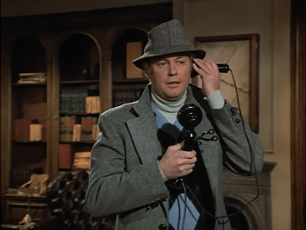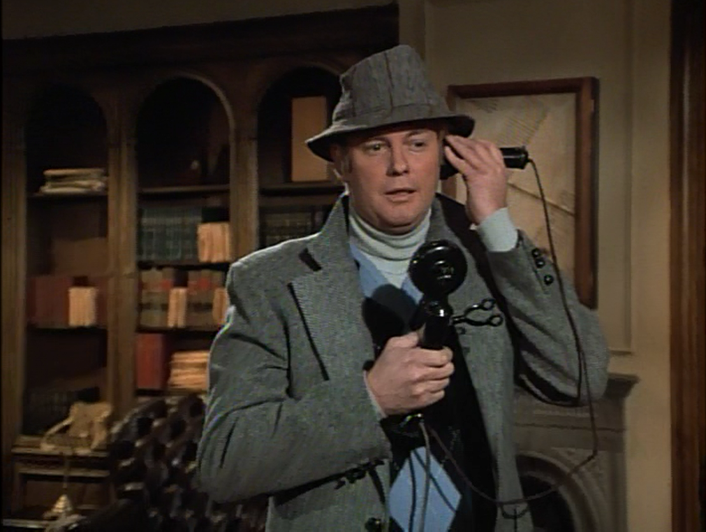 I spent a lot of time above giving you details about this case’s back story, and that’s not the half of it. This is my biggest problem with the episode: the plot is rich and complex, and the back story is interesting, but in order to get all this information out, characters have to talk and talk and talk. With such a large cast, we get barely a cameo performance by Victor Buono, and fairly brief turns by Mulhare and Tucker. Yet the relative inertness here shouldn’t stop one from admiring the complexity of the plot and the simple visual clue that turns the entire story I just related on its ear (which means Ellery has to talk and talk at the end.)