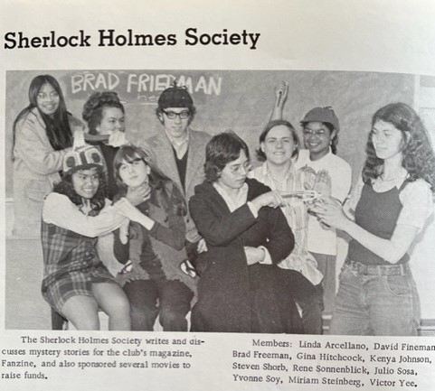 I would be jealous of all those Japanese students, except it just so happens that I belonged to just such a group when I went to high school. We were called The Sherlock Holmes Society, and we met to talk about Doyle and Christie and other great authors, to share their books and watch movies based on their stories. As proof, I offer this photograph from my senior yearbook at Lowell High School: