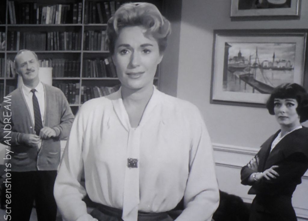Anyway, Mary and Gregory are enjoying domestic bliss when they are spotted in the window by Victoria (Phyllis Kirk), who happens to be Gregory’s wife. But when Victoria barges into the study – Mary isn’t there!