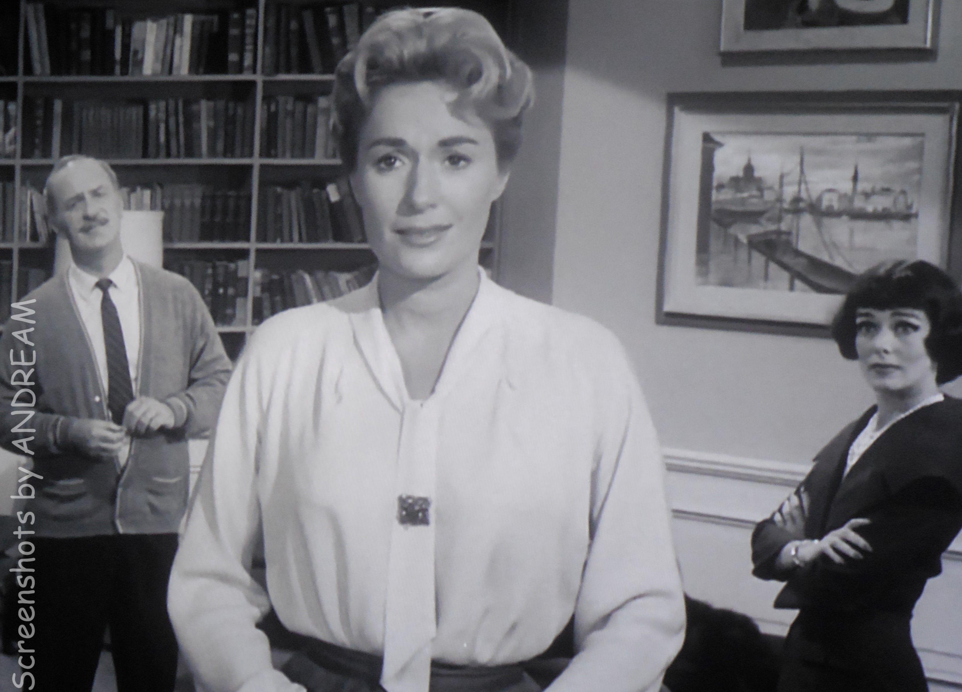 The great Keenan Wynn, son of the remarkable comic Ed Wynn, plays Gregory West, a very ordinary sort of guy who happens to be America’s greatest playwright. The characters he writes seem to come to life on the stage – and we soon find out why. The opening scene plays like a sophisticated romantic comedy: Gregory sits on the sofa in his study watching the beautiful Mary mix him the perfect martini. Mary is played by Mary La Roche, who we also saw in “Living Doll” and who also plays the perfect mate in the film adaptation of Bye Bye Birdie. She also appeared in five episodes of Perry Mason, which friends of mine know I consider a sign of great success.
