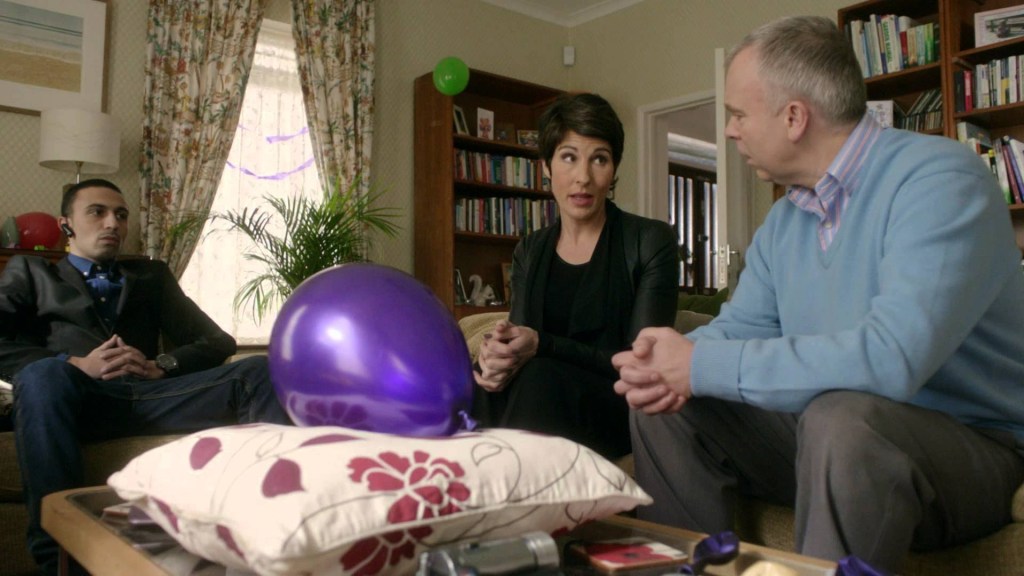 Premise: Jan and Graham are the suburban parents of little Tamsin, who is terminally ill. The couple arrange with WishmakerUK to have pop star Frankie J. Parsons (a favorite of Jan’s) come visit Tamsin. When the singer suffers a fatal heart attack while blowing up a balloon for the little girl, his assistant Si arranges with Frankie’s manager to have the body picked up in a way that will avoid publicity. While they are waiting, Graham, Si and Sally, the WishmakerUK representative, realize that the balloon containing Frankie’s dying breath could net them a fortune.