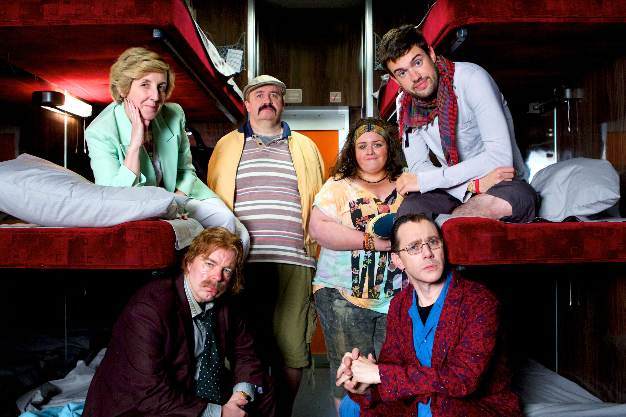 An English doctor named Maxwell is trying to get a good night’s sleep before a big job interview the next day with the World Health Organization. Alas, it is not to be as his fellow passengers arrive to share the couchette: first comes Jorg, a drunk German suffering from excessive flatulence; next are squabbling couple Kath and Les, bound for their daughter’s wedding; and finally there’s Shona, a heavyset Australian backpacker who has picked up Hugo and plans to have sex with him in her lower bunk. There’s also an unidentified passenger in the middle bunk across from Maxwell who is sleeping soundly through all the disturbance. Very soundly, as it turns out . . .