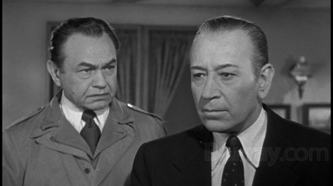With a cast and crew of this pedigree, there’s no way this film couldn’t be sensational. But it isn’t. No, it isn’t at all. Cinematographer Harry Neumann was a veteran of gangster pictures, and the film doesn’t look bad; however, the docudrama style gives the whole thing a muted feel.. At 62 and 54 respectively, Robinson and Raft seem a little subdued. It’s odd seeing Robinson take the lives of his men, witnesses and victims so much for granted. Only Totter, playing the embittered moll to the hilt, strikes emotional gold here. The final moment was obviously meant to conjure up memories of Double Indemnity. Joey has, at the last minute, found his inner patriotism and helps Leduc bring down the Commies – at the cost of a fatal bullet. Robinson holds a dying Raft in his arms, just like Barton Keyes cradled Walter Neff – except there’s no relationship between them and you don’t feel much of anything for either of these guys. I like everyone involved. I just wish I’d liked the film more.