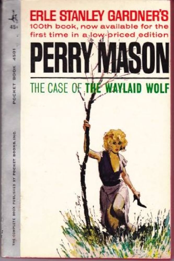 Now we come to the end of a journey begun a few years ago with a howling dog and ending in 1960 (luckily before Gardner’s writing really falters) with The Case of the Waylaid Wolf. This shares certain features with our last entry, 1959’s The Case of the Mythical Monkeys: both open with a fetching secretary getting in harm’s way, showing real guts, and being rewarded by finding herself on trial for murder.