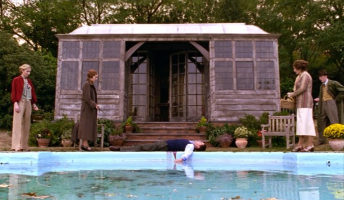 His physical entrance takes nearly three pages of walking, but when he finally comes upon the family at the swimming pool, Christie imbues the moment with a telling theatricality that she allows both Poirot and the reader to misinterpret: